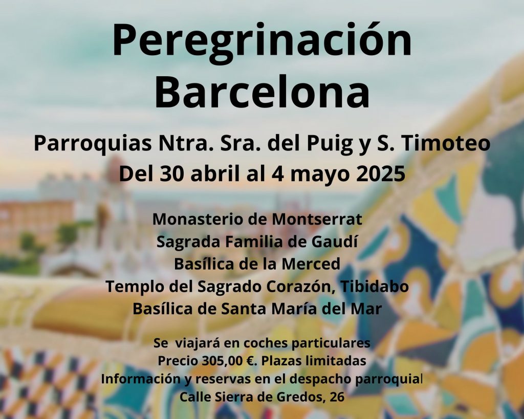 Peregrinación a Barcelona del 31 abril al 4 mayo 2025 Posted on 18 enero, 2025 por Parroquia Responder